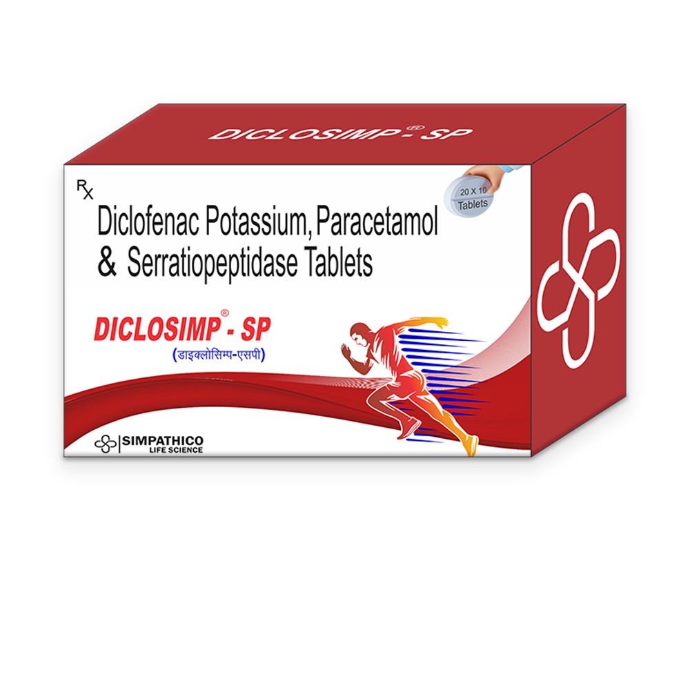 Diclosimp-SP Tablet is a combination medicine that contains Diclofenac (NSAID), Chlorzoxazone (muscle relaxant) and Paracetamol (analgesic and antipyretic). Diclosimp-SP is used to relieve pain and inflammation in conditions that affect muscles. It is effective for sprains and strains, skeletal muscle spasm, post-surgical and discomfort associated with muscle spasms.