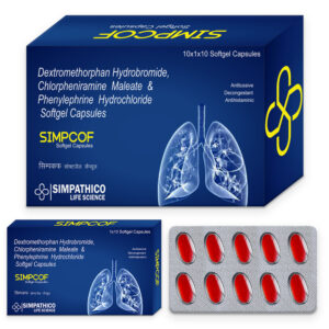 Simpcof Softgel contains a combination of three medicines namely Chlorpheniramine (Anti-allergic), Dextromethorphan (Anti-tussive) and Phenylephrine (Decongestant). Simpcof Softgel is used to treat symptoms caused by common cold, flu, allergies, hay fever or other breathing illnesses (e.g. sinusitis and bronchitis), dry cough, throat irritation, sneezing, watery eyes, runny nose and stuffed nose.
